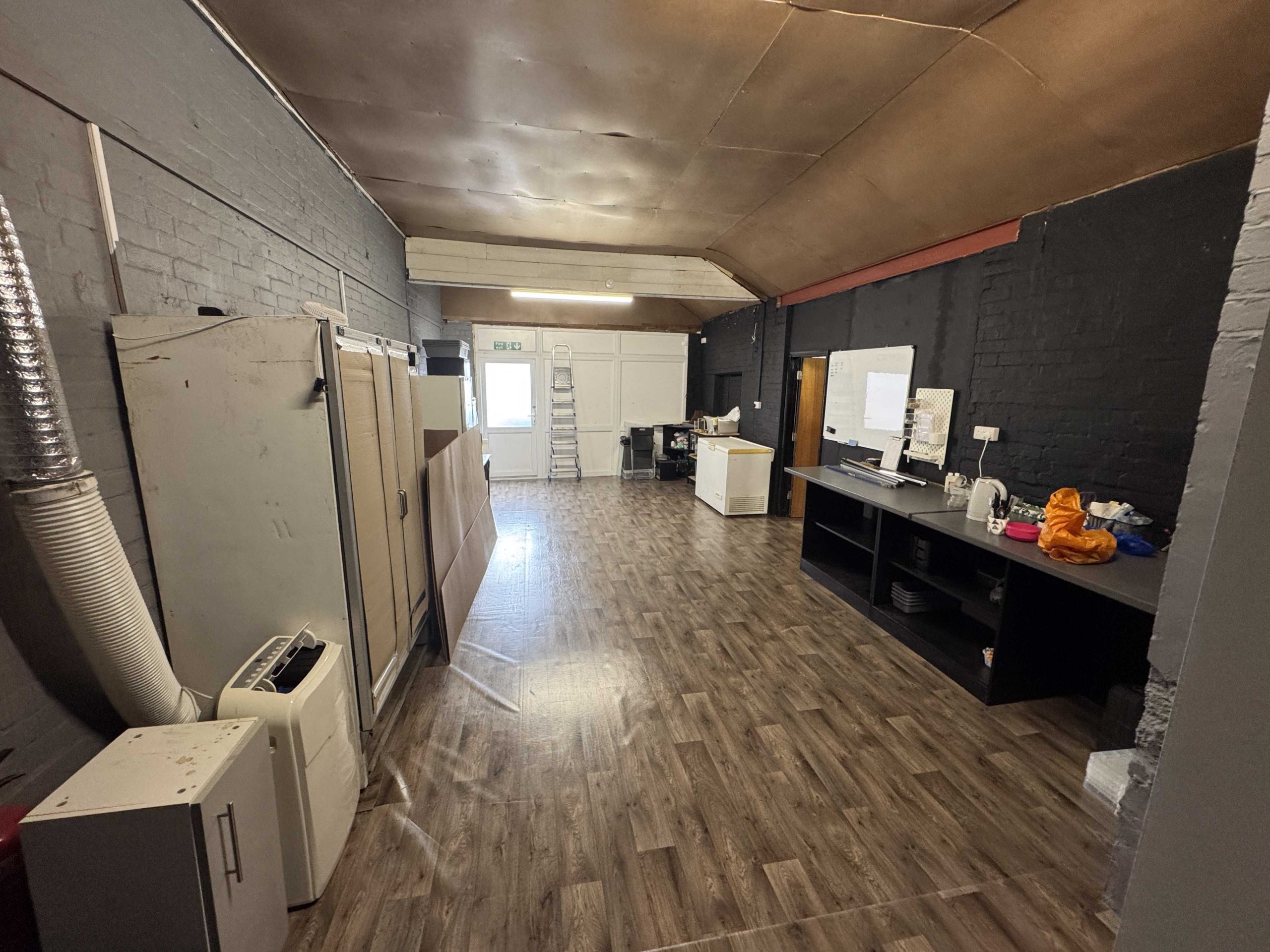 The single storey building, divided into two main spaces with a small mezzanine store